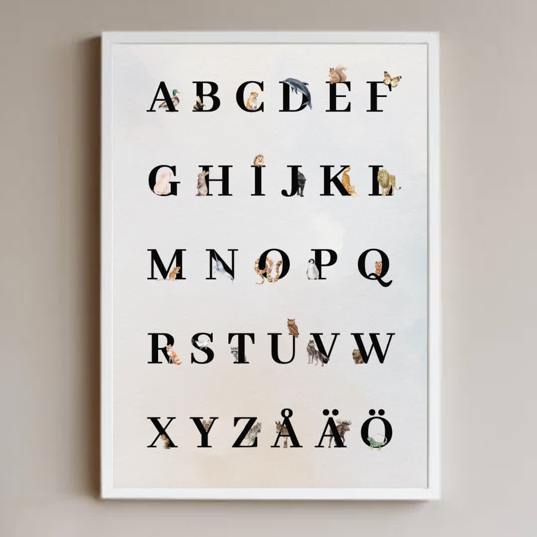 Upptäck det svenska alfabetet med vårt färgglada djuralfabet. Från ”A” för ”Anka” till ”Ö” för ”Ödla” tar denna poster eleverna på en rolig och lärorik resa genom bokstäverna. Skapa en inspirerande klassrumsatmosfär och främja elevernas språkutveckling med denna fina alfabetposter!”
