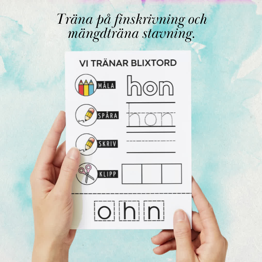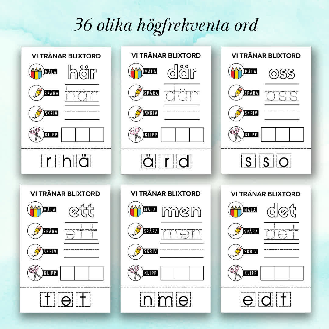 Med 36 sidor med olika ord och fyra olika övningar per ord, inklusive läsning, spårning, skrivning och bokstavsutklipp, ger Blixtord en mångsidig träning för eleverna samtidigt som de utvecklar sin finmotorik.